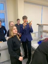 В преддверии Нового года учителя предметов естественнонаучного цикла, Екатерина Александровна Некрасова (учитель физики), Светлана Константиновна Семанова (учитель химии) и Калинина Наталья Павловна (учитель биологии), организовали метапредметное занятие «Новогодний калейдоскоп» для обучающихся профильных 10А и 10В классов.