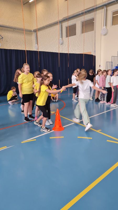 В связи с этим событием, в рамках педагогической практики, студенты 331 группы ПетрГУ Кафедры Теории и методики физического воспитания Сывороткина Анастасия и Елесин Илья провели спортивную игру " Веселые забеги" между 4А и 4Б классами.