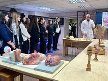 Преподаватель кафедры морфологии Колтунов Богдан Олегович продемонстрировал учащимся натуральные экологически чистые анатомические препараты, изготовленные методом полимерного бальзамирования, которые используются в обучении студентов. Богдан Олегович провел познавательную экскурсию по анатомическому музею СПбГУ. Впечатлил ребят – интерактивный анатомический стол Пирогова – инструмент для изучения биологии, анатомии, физиологии и медицины, который позволят детально рассматривать каждый орган в человеческом теле.