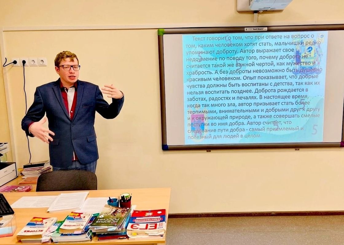 Заботливый классный руководитель и талантливый учитель. Обаятельный человек, что не маловажно для учителя словесности.
