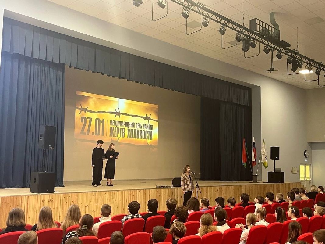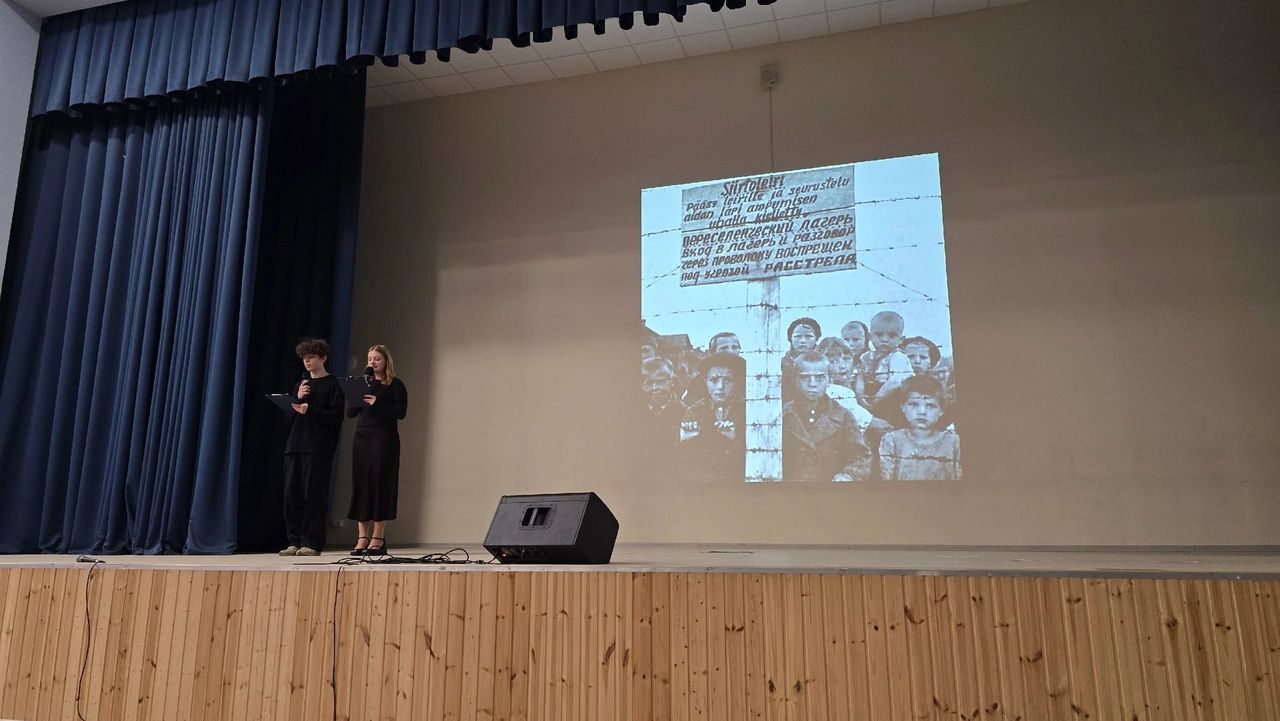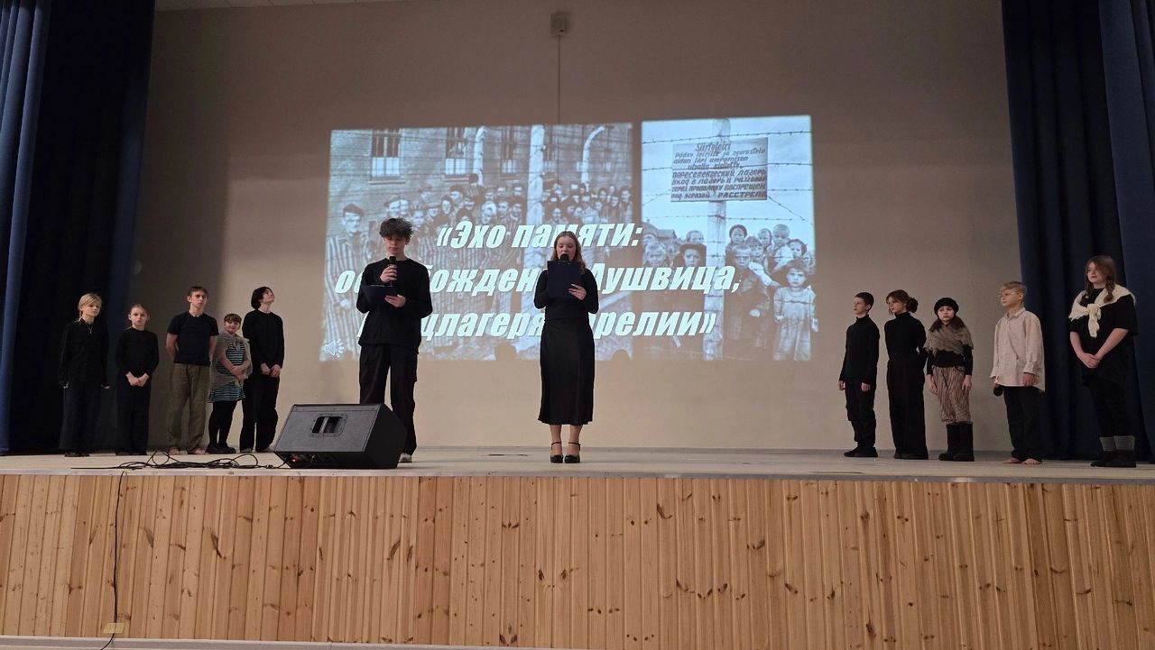 Разговоры о важном для 7-10 классов сегодня прошли в актовом зале. Исполнение гимна Российской Федерации и вынос флагов с самого начала задали особый тон мероприятию, настроили участников на серьёзный лад.«Эхо памяти: освобождение Аушвица, концлагеря Карелии».Учащиеся услышали историю освобождения немецкого концлагеря Аушвица, познакомились с трагической страницей в истории Карелии - финским оккупационным режимом, вместе с творческой командой «листали» книгу воспоминаний малолетних узников финских концлагерей «Мы еще живы».Урок памяти провели Антон Соколов и Екатерина Зык. Наш разговор был бы не столь пронзительным без наших артистов Илюкевич Софии, Титова Вадима, Коверской Марии, Тароевой Насти, Хлебаевой Марии, Бурянина Егора, Хачева Валерия, Ефремовой Таисии, Андрющенко Алены и Аксенова Кирилла.Благодарим: