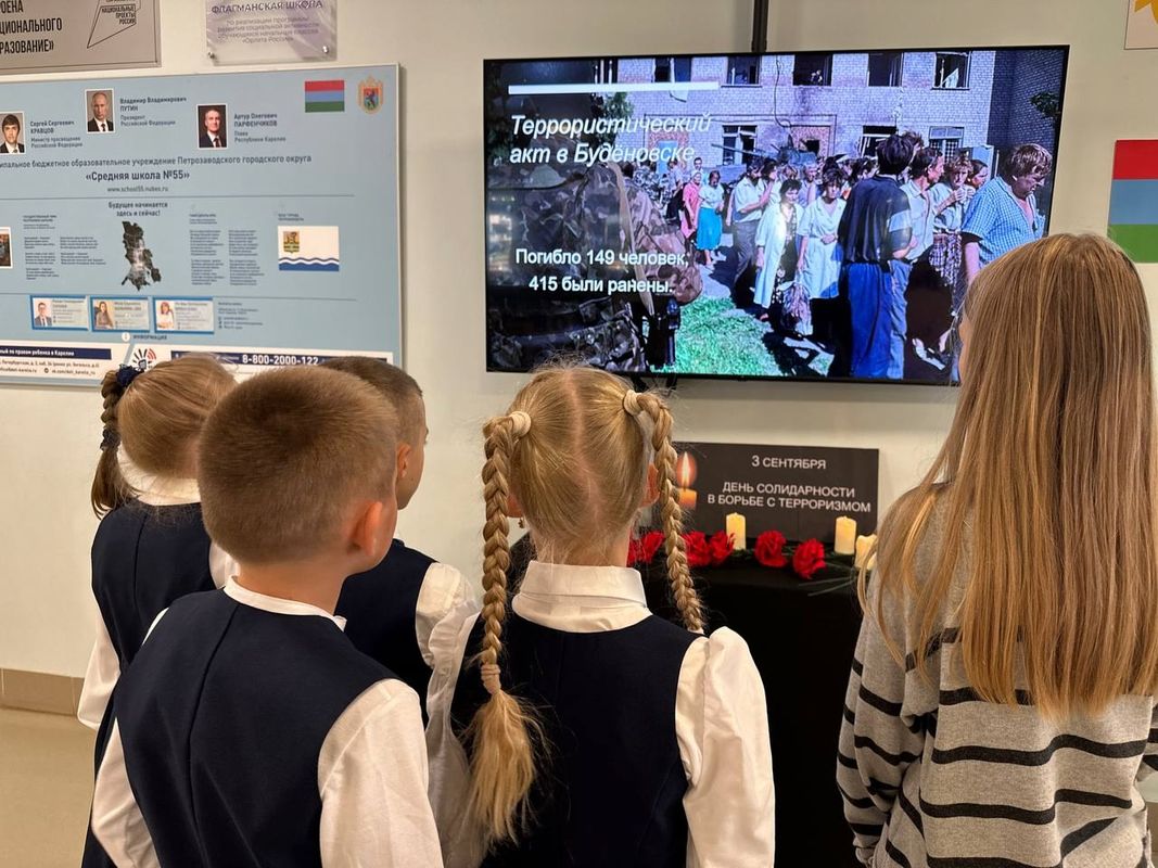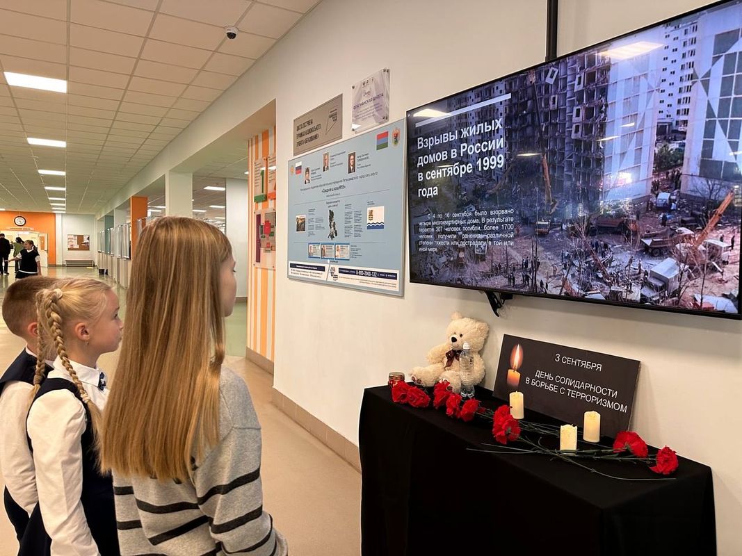 Более 2000 учащихся и педагогов нашей школы одновременно прервали уроки, чтобы прослушать радиосообщение, вспомнить еще раз о правилах безопасности при терроре, почтить минутой молчания тех, кто погиб в годы Великой Отечественной войны и стал жертвой террора.