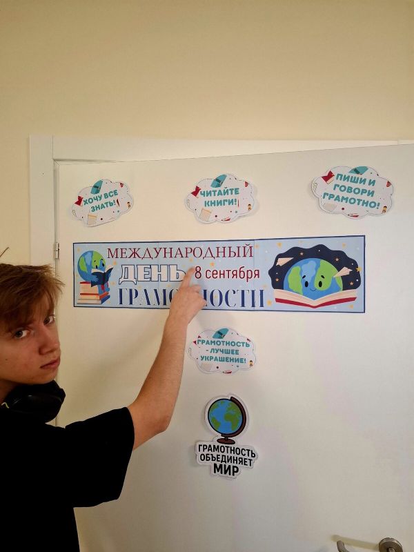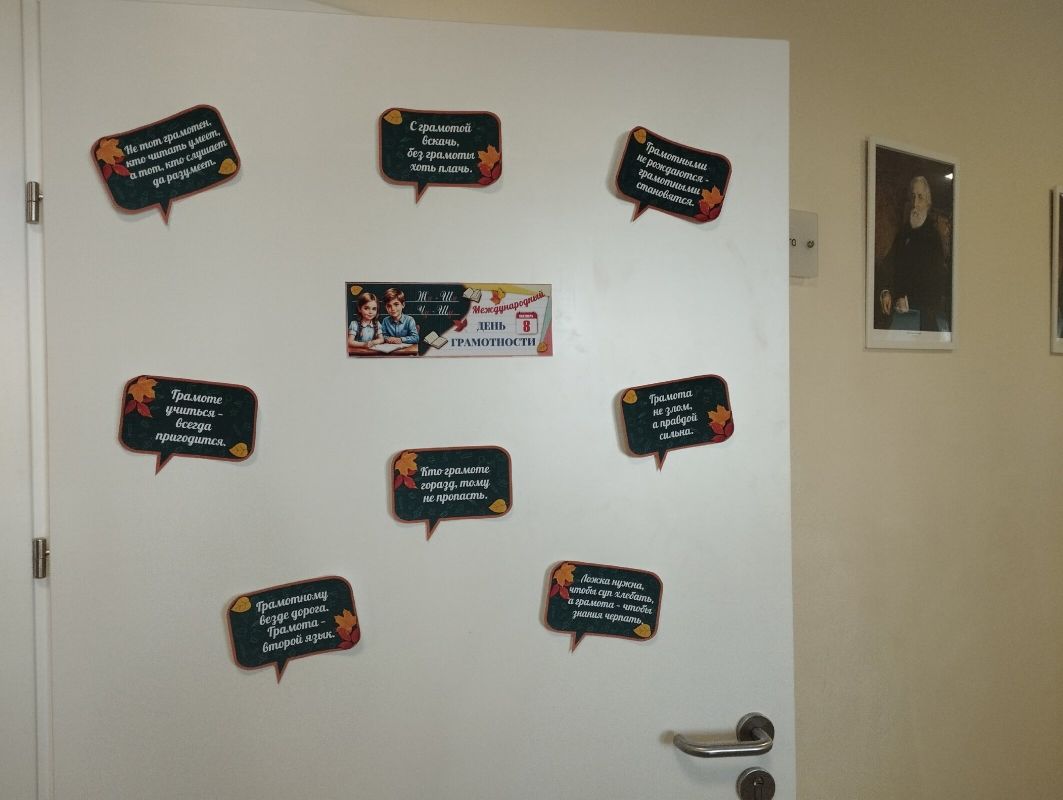 Отдельно хочется отметить 8«Г» класса: под руководством Юлии Викторовны Антроповой они оформили информационный стенд, подчеркивая важность грамотности в современном обществе.