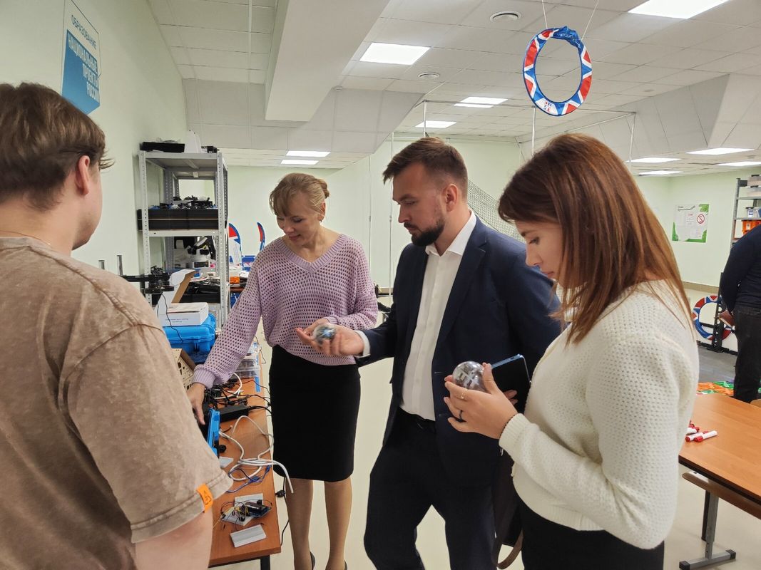 Показали гостям школу, занятия в кружках, стендовые выставки АО "АЭМ- технологии". Рады, что школа гостям понравилась, но больше всего заинтересовал Центр инженерных компетенций. Эдмантас Артёмович Шараускас, учитель информатики и робототехники, показал и рассказал гостям о школьных проектах.