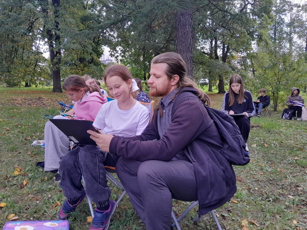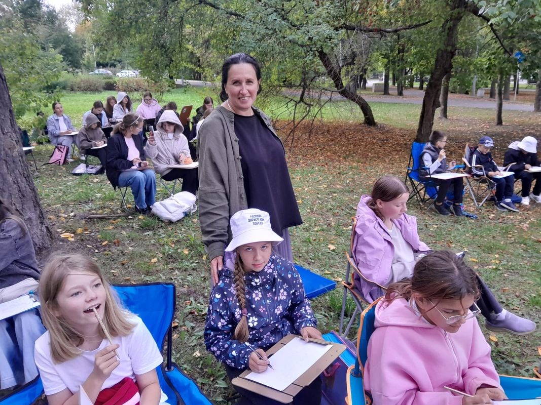 Ученики художественно-технологического и художественно-архитектурного классов под руководством учителя изобразительного искусства Юрия Андреевича Вориводы и классных руководителей Марии Николаевны Заборовской и Ольги Юрьевны Долгушиной в рамках проекта "Господь дарует нам победу" выехали на пленэр к Александро-Невскому собору.