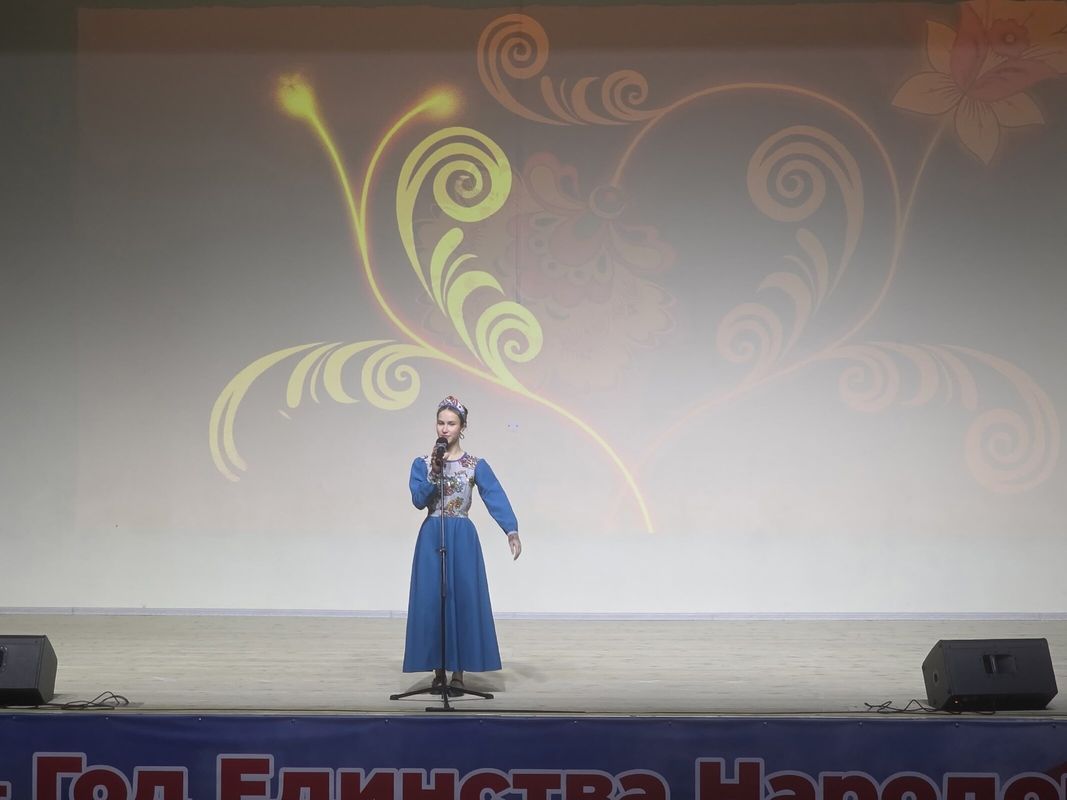 Очень необычным и ярким стало выступление учащихся начальной школы, которые читали стихи о величии и многообразии народов России под звуки флейты. Инструмент пел в руках Светланы Артеменко, ученицы 8 класса, а потом запела и сама Светлана: сильно и звучно!