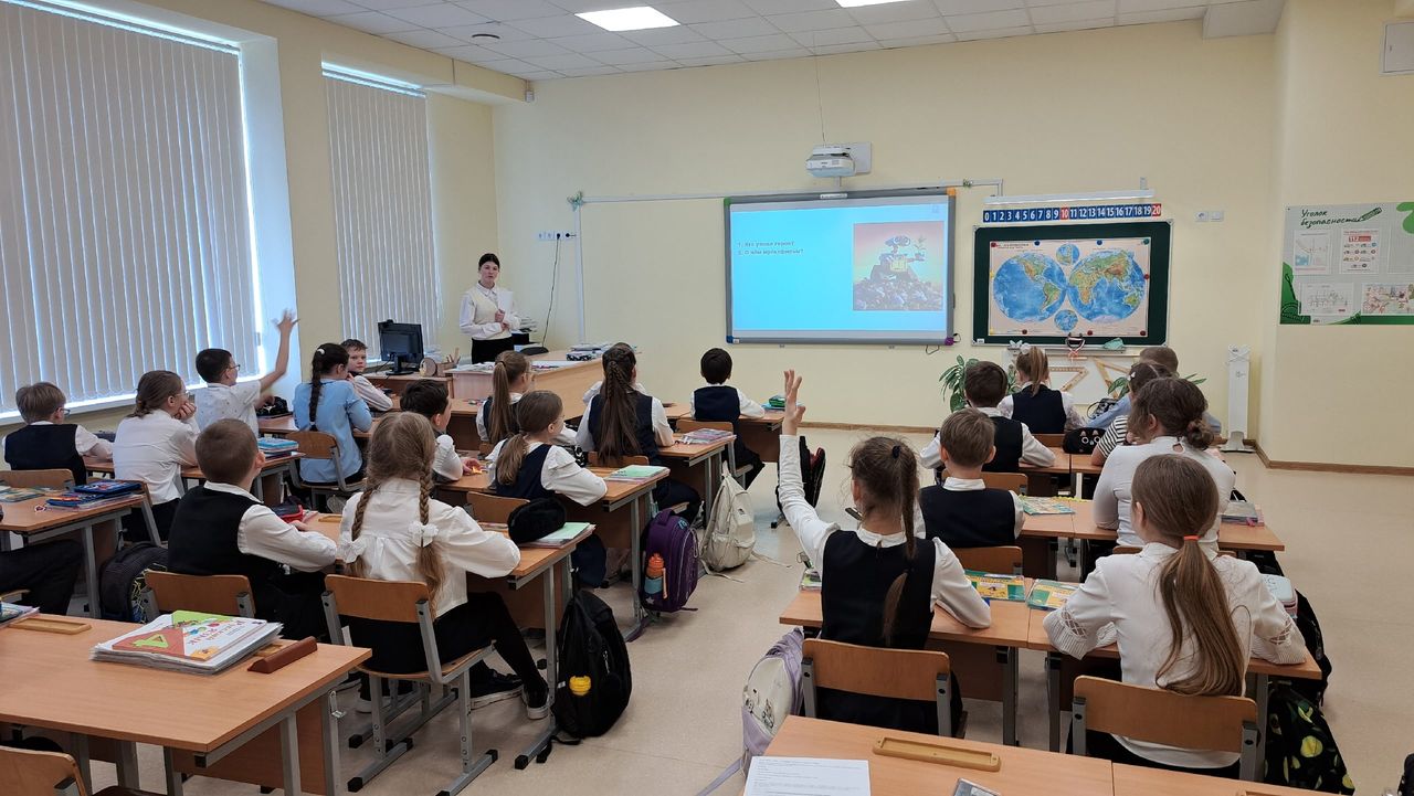 В рамках реализации трека «Орлёнок-эколог» ученики 4 «Б» класса встречали гостью — старшеклассницу Аделину Ершову. Под руководством своего наставника Марии Николаевны Сопишко Аделина готовит индивидуальный проект по экологии и пришла поделиться своими наработками с младшими школьниками.