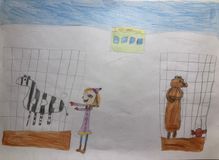 Рисунок Ксении Андаевой основан на рассказе «Злая Галя». Это рассказ о злой девочке, которая дразнила животных в зоосаде, но слон смог ее наказать. А как? Прочти рассказ Е.И. Чарушина.
