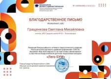 Ученики 1Е класса (учитель - Светлана Михайловна Гращенкова) стали победителями и призерами во Всероссийском детском творческом конкурсе «Лего БУМ».