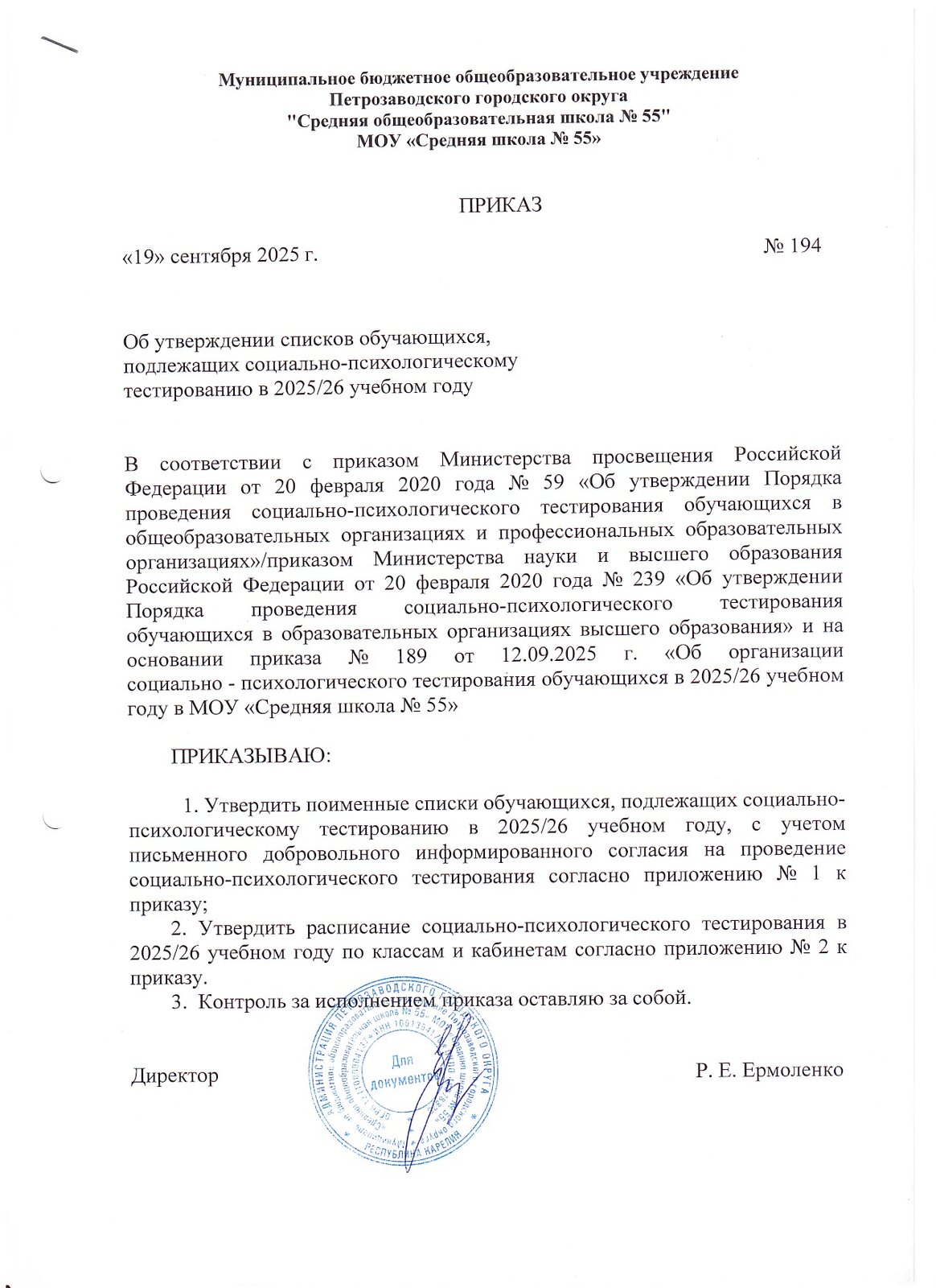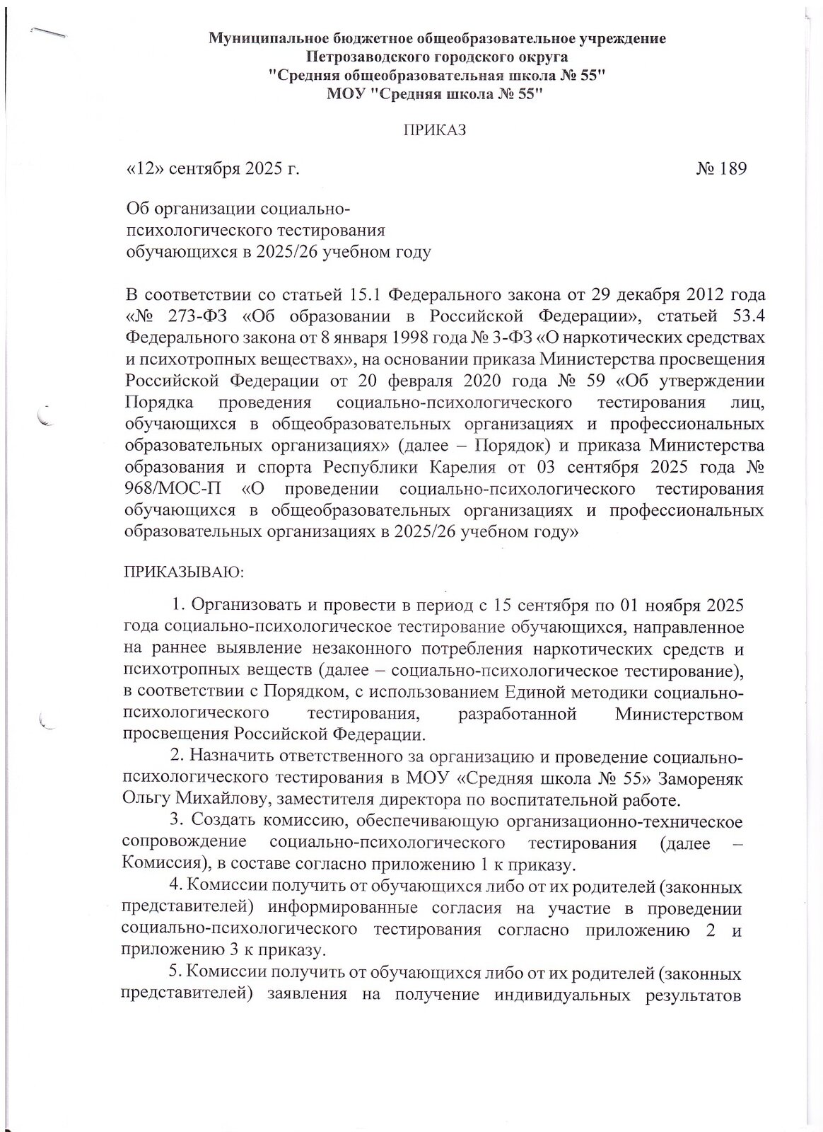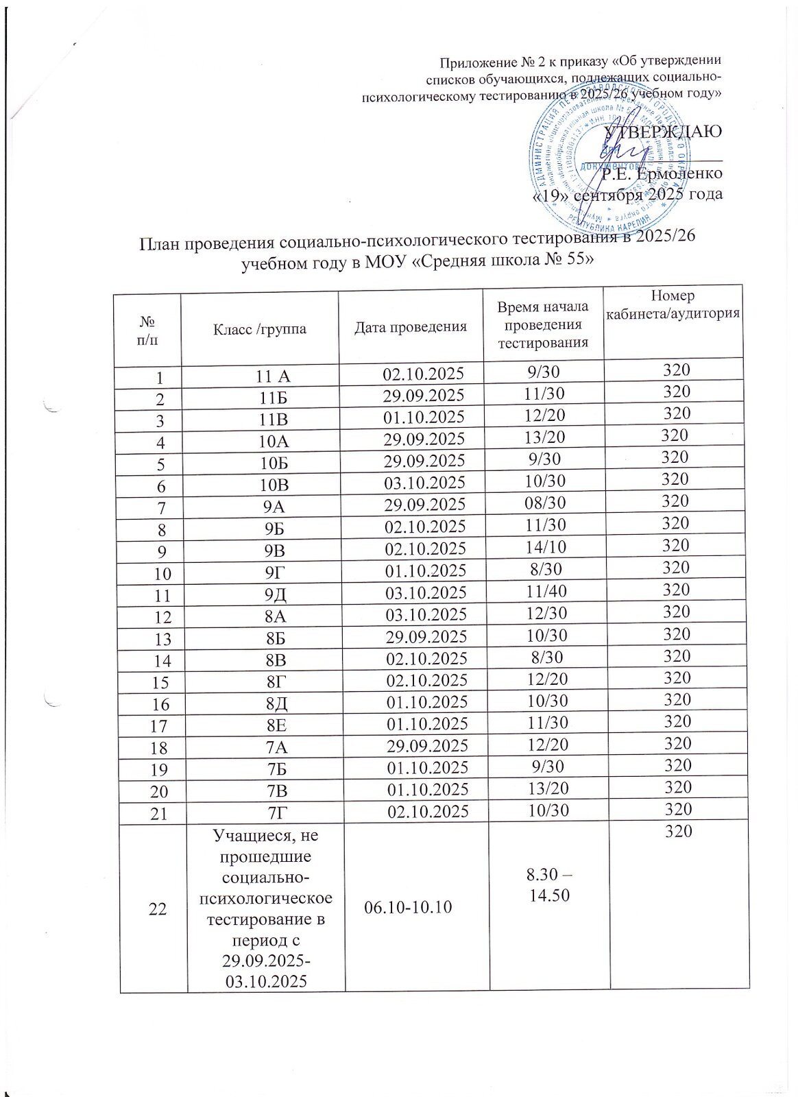 Файл (в формате PDF) – расписание проведения социально-психологического тестировании;